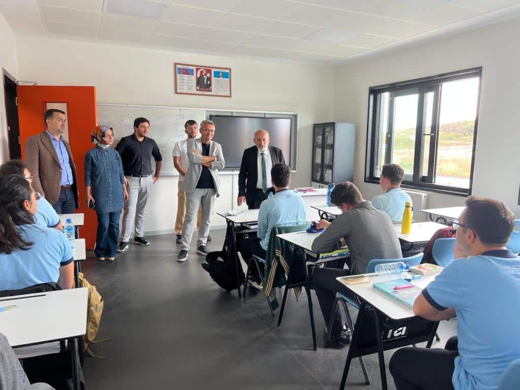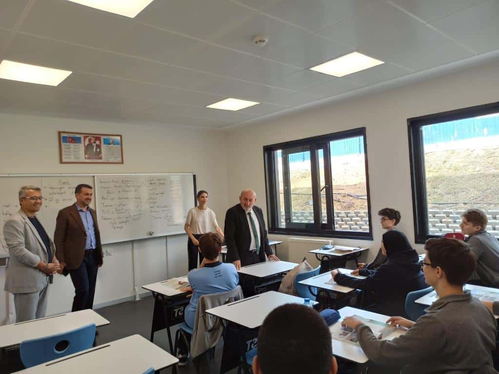During the visit, Mr. Mustafa Yılmaz toured the new school building and learned about the physical facilities. The District Director of National Education visited classrooms and observed the classroom operations firsthand, engaging with the students and chatting with them. They discussed the students' educational progress, the opportunities offered by our school environment, and the ongoing work.