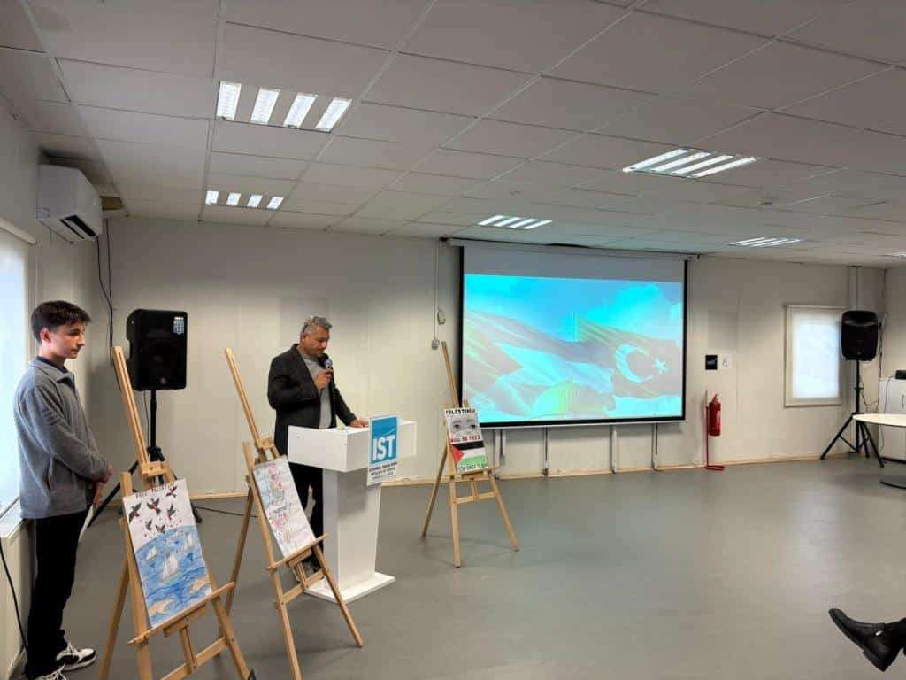 The ceremony began with a moment of silence and the singing of the National Anthem. Following this, our students recited poems and gave short speeches emphasizing the humanitarian aspect of the events in Gaza. The program also included presentations on the importance of peace and brotherhood.