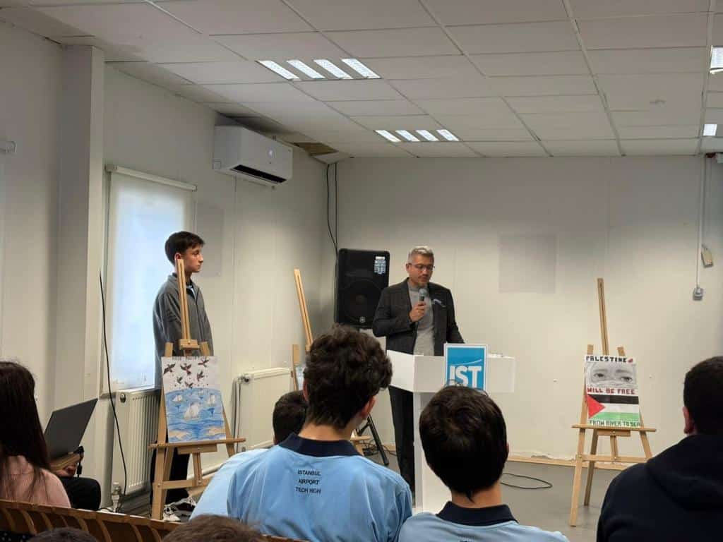 Tören, saygı duruşu ve İstiklâl Marşı’nın okunmasıyla başladı. Ardından öğrencilerimiz, Gazze’de yaşanan olayların insani boyutuna vurgu yapan şiirler okudu ve kısa konuşmalar gerçekleştirdi. Programda ayrıca, barışın ve kardeşliğin önemi üzerine yapılan sunumlar yer aldı.