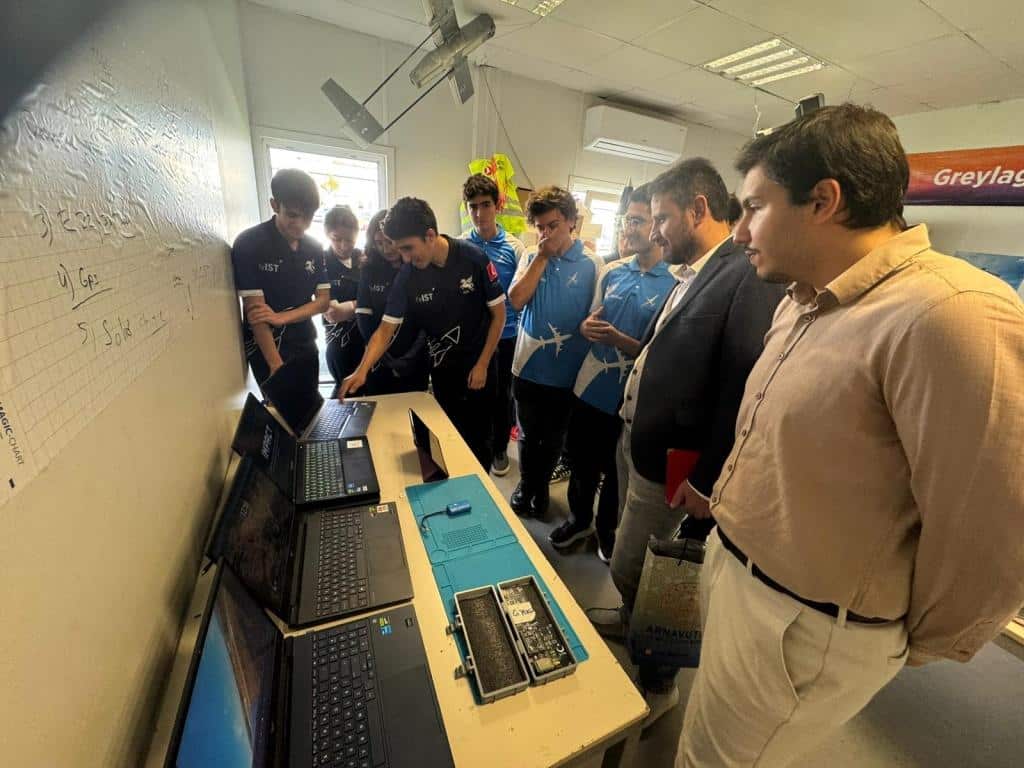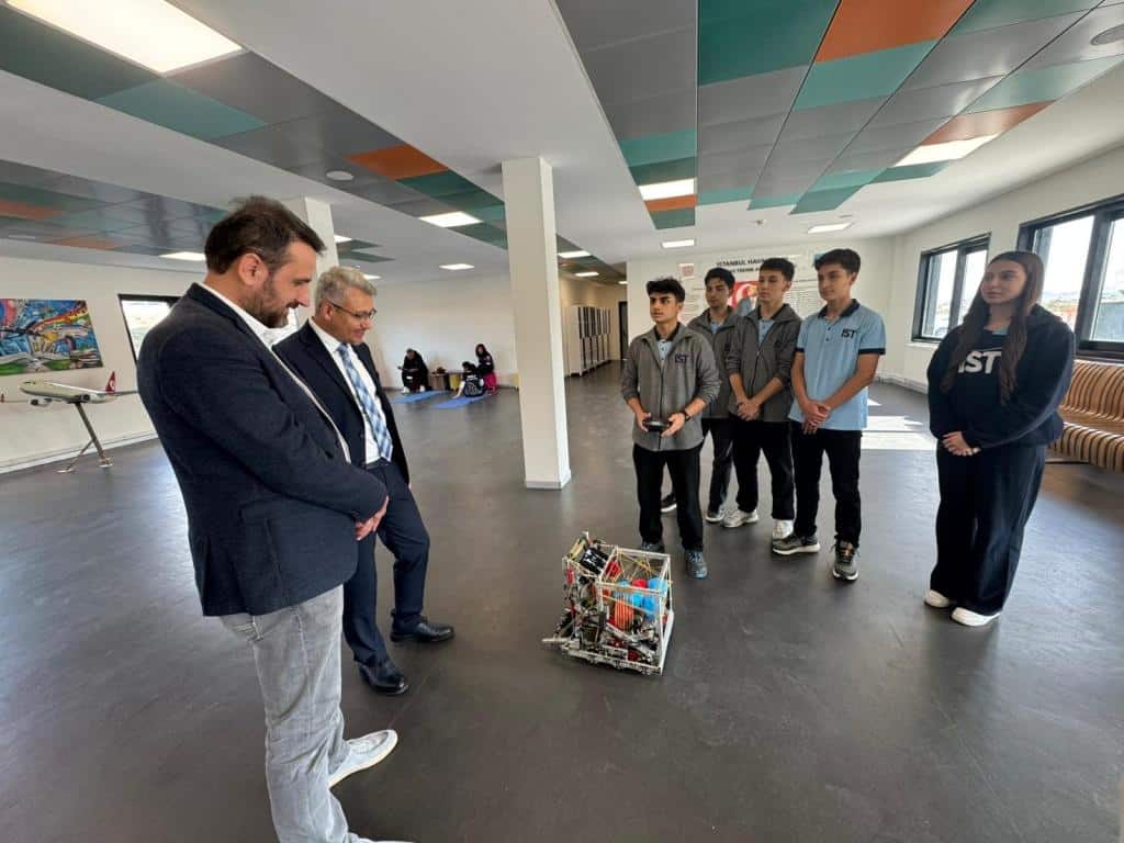 Programın ardından Sayın Temel, okulumuzun İHA, roket ve VEX robot takımlarını ziyaret ederek öğrencilerle birebir sohbet etti, yürütülen projeler hakkında bilgi aldı ve gençlerin çalışmalarını yakından inceledi.